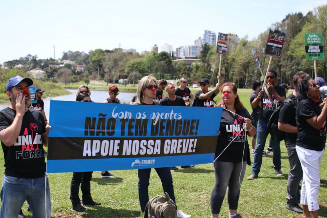 Nesta manhã, os servidores já haviam protestado no Parque Barigui, na inauguração da usina hidrelétrica instalada no lago e que contou com a presença do prefeito Rafael Greca (PMN). Os agentes em greve trabalham na prevenção de doenças graves, fiscalizando locais de risco para dengue, Zika, chicungunha e febre amarela, as chamadas endemias.