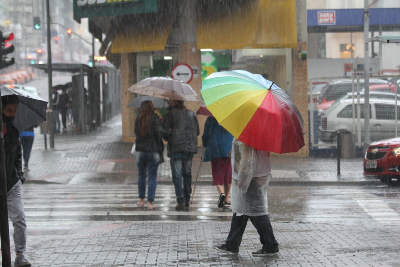 A previsão é de que a chuva em Curitiba e região metropolitana dure até o fim da tarde, variando a intensidade.