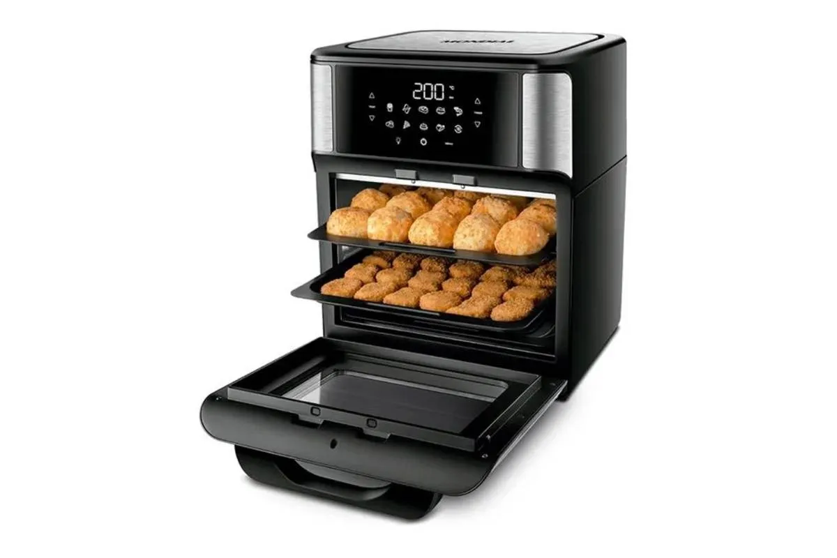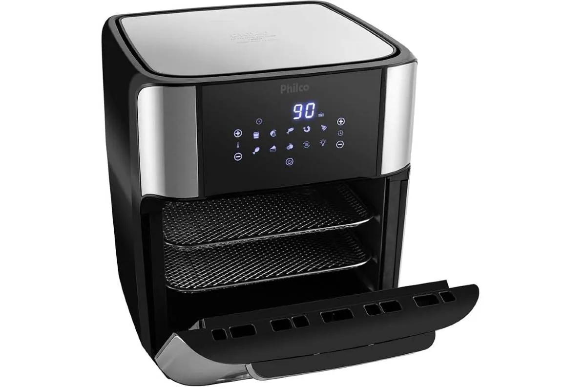 Diferente dos modelos comuns, as versões multiuso lembram um mini-forno, com espaço interno maior e bandejas em dois andares. Isso permite preparar duas receitas ao mesmo tempo ou aquecer recipientes diferentes de uma só vez, diferentes das air fryers tradicionais.