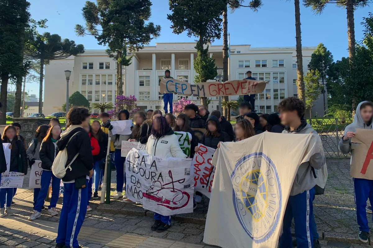 Alunos do Colégio Estadual do Paraná (CEP), em Curitiba, fazem uma paralisação na manhã desta quarta-feira (29), contra o projeto que tramita na Assembleia Legislativa do Paraná, que pretende expandir o programa Parceiro da Escola. A principal reivindicação dos estudantes é que o assunto seja debatido com a comunidade.