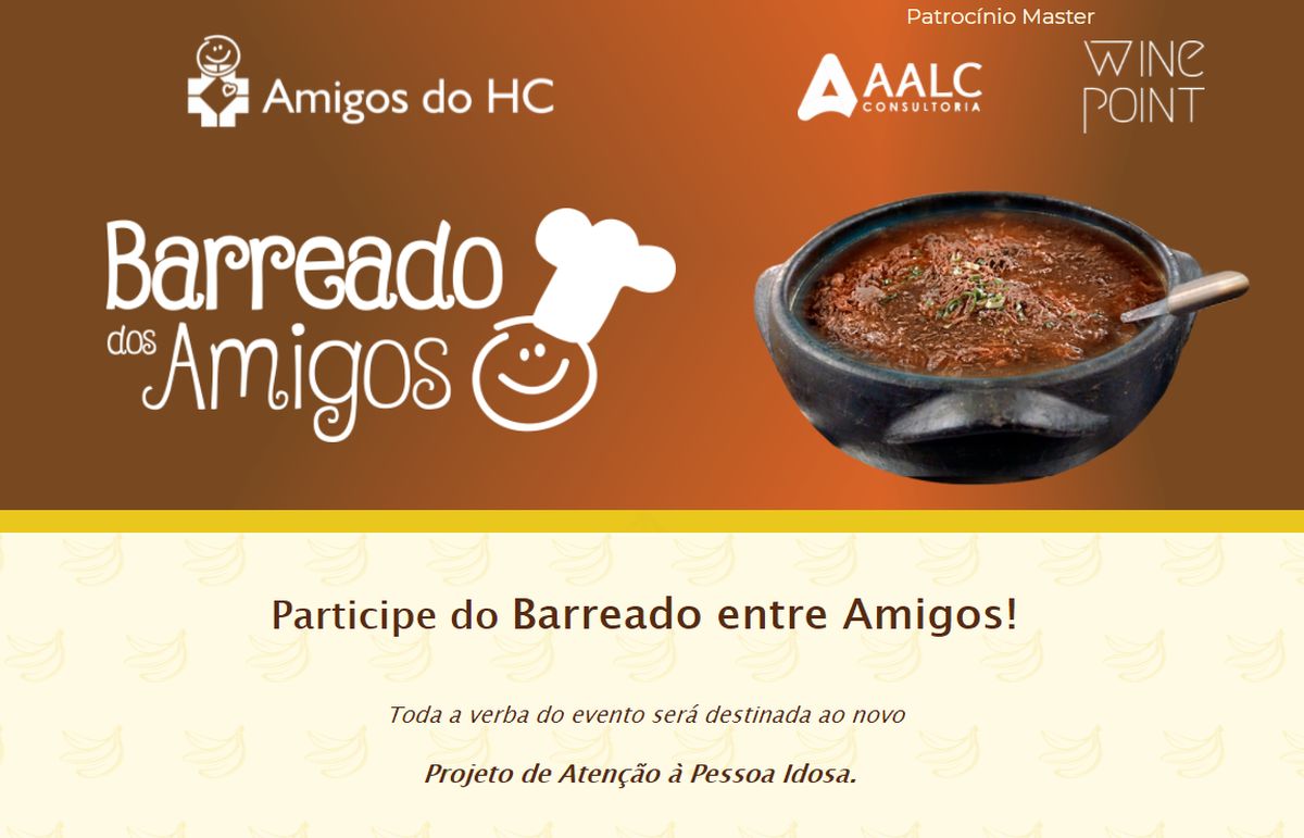 A organização fica por conta da Associação Amigos do HC e o rango será responsabilidade do Restaurante D’Marina. O prato vai com 400 gramas de barreado, acompanhado por 1 filé de peixe, arroz branco, farinha de mandioca e bananas cozidas. Para a sobremesa, o clássico doce de abóbora em cubos. Todo o dinheiro arrecadado será destinado à realização do Projeto de Atenção à Pessoa Idosa