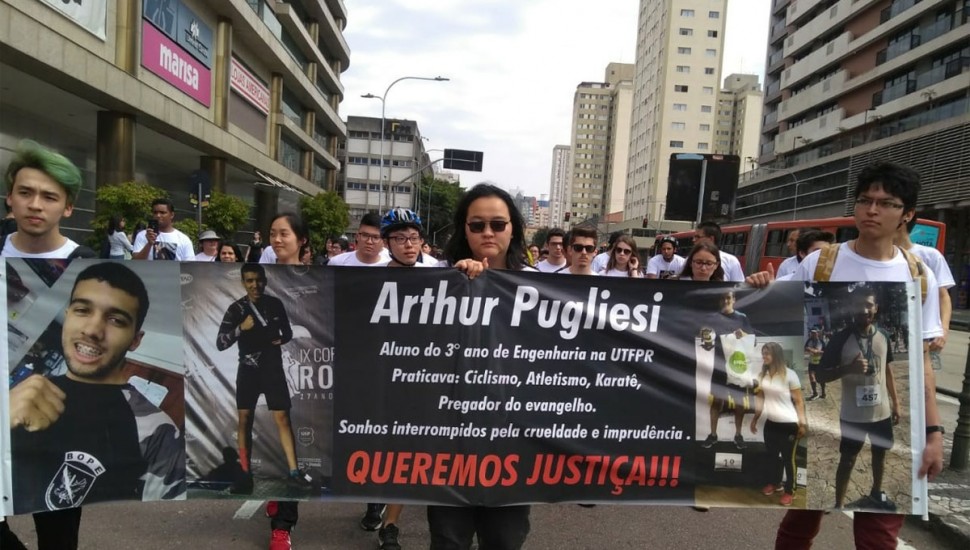 O Centro de Curitiba foi marcado neste sábado (31) pelo protesto realizado por amigos e familiares de Arthur Pugliesi, que morreu após ser atropelado no último dia 22 de julho, na Avenida Comendador Franco, Jardim Botânico, em Curitiba. A família cobra justiça e acusa o atropelador de ter mexido no corpo do jovem logo após o acidente e de não ter prestado ajuda.