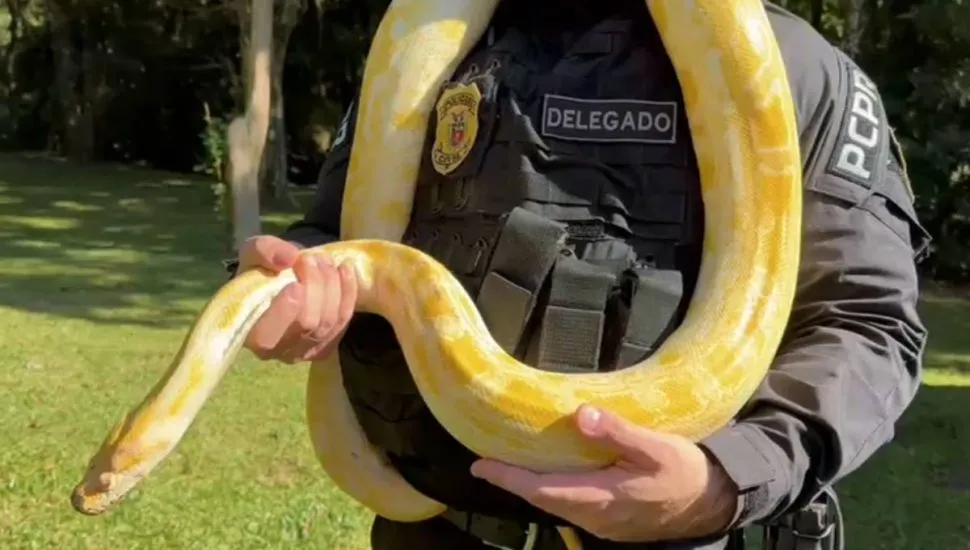 “Numa clínica veterinária um dos maiores traficantes de animais de Curitiba e do Brasil encontramos 3 jiboias, diversas corn snake, uma cobra norte-americana, além de diversos animais congelados, ratos, saguis, papagaios. Um cenário expressivo do tráfico de animais. Veterinário e esposa presos”, disse delegado da PCPR Guilherme Dias.