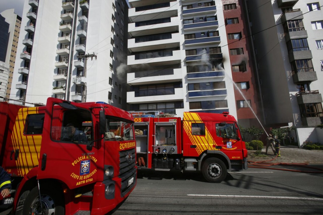 Quatro caminhões e uma carreta do Corpo de Bombeiros trabalharam na tarde deste domingo (12) para conter um incêndio no Edifício Claude Monet, localizado na Avenida Visconde Guarapuava, no Batel, em Curitiba. O fogo começou no apartamento do 3° andar, por volta das 15h30, e todos os moradores precisaram evacuar o prédio.
