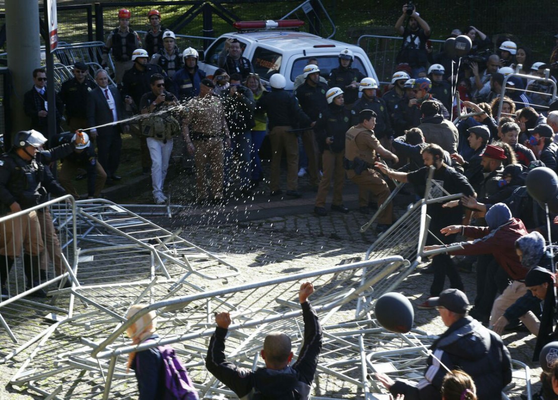 A Câmara aprovou quatro projetos do “pacotaço” enviado pelo prefeito Rafael Greca (PMN), em sessão especial realizada na Ópera de Arame, na manhã desta segunda-feira (26). A votação transcorreu sob uma operação de guerra, com a ação de centenas de policiais militares e helicóptero. Enquanto vereadores votavam as “medidas de recuperação”, do lado de fora, houve confronto entre servidores municipais e policiais, com direito a bombas de gás e spray de pimenta. Na terça-feira (27), deve haver uma nova sessão, para voltar os projetos, em segundo turno.