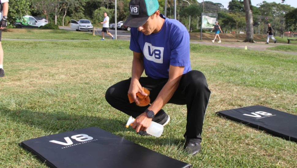 Apesar do movimento, a proximidade é evitada entre os frequentadores do Barigui, mesmo ao ar livre. O personal trainer Tiago Vicente Cochak, 28 anos, está acostumado a trabalhar com grupos de dez pessoas. Após uma sessão, ele pega o borrifador de álcool e limpa no colchonete, o que está sendo reforçado agora. “Isto já era feito, mas agora reforçamos. Além disto, estamos colocando os alunos a uma distância de dois metros”, explicou Tiago Vicente.
