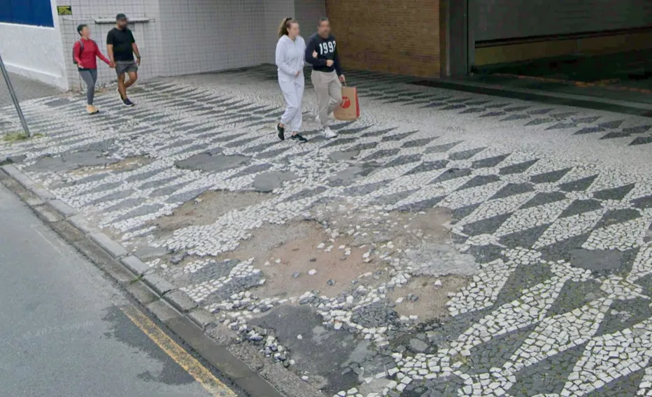 Ainda de acordo com a nota enviada pela prefeitura, a equipe constatou que há outros trechos danificados, com pedras faltando e desníveis que comprometem o passeio.