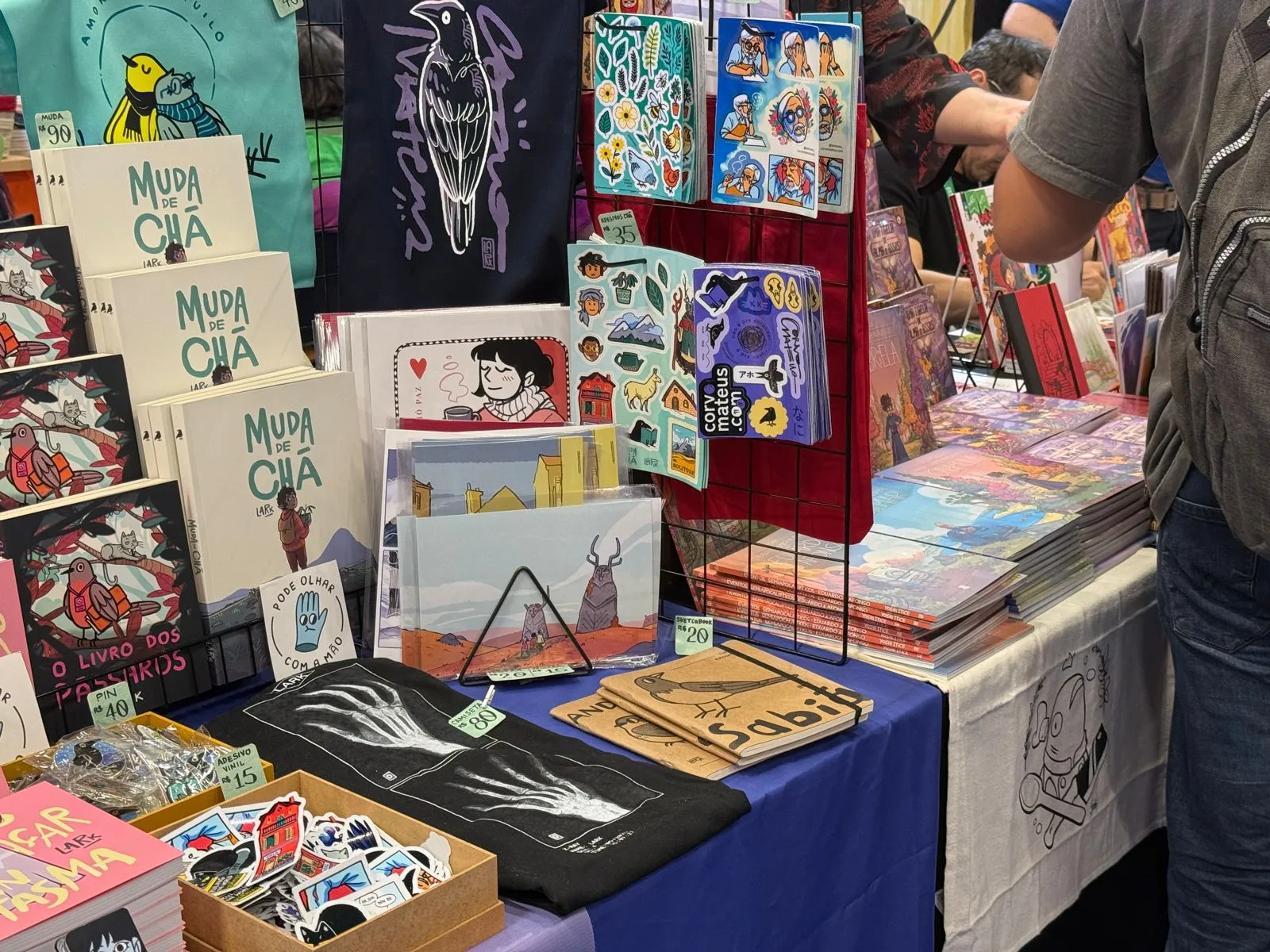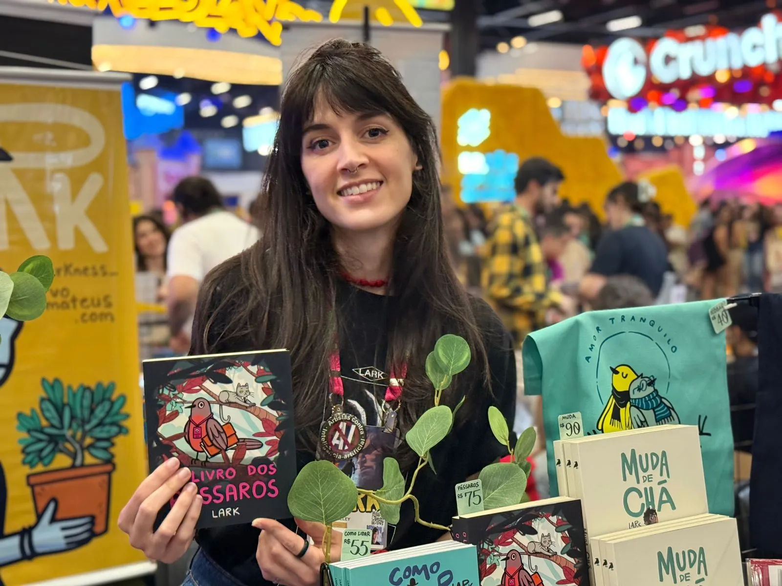 Para Lark, apresentar as obras em uma feira desse porte traz um elemento único: o encontro. “Essa conexão de olhar no olho da pessoa, de conversar, de ver essa troca, de pessoas que não conhecem e eu acabo apresentando, elas acabam gostando, se encantando pelo meu trabalho, é o mais legal”, afirma.