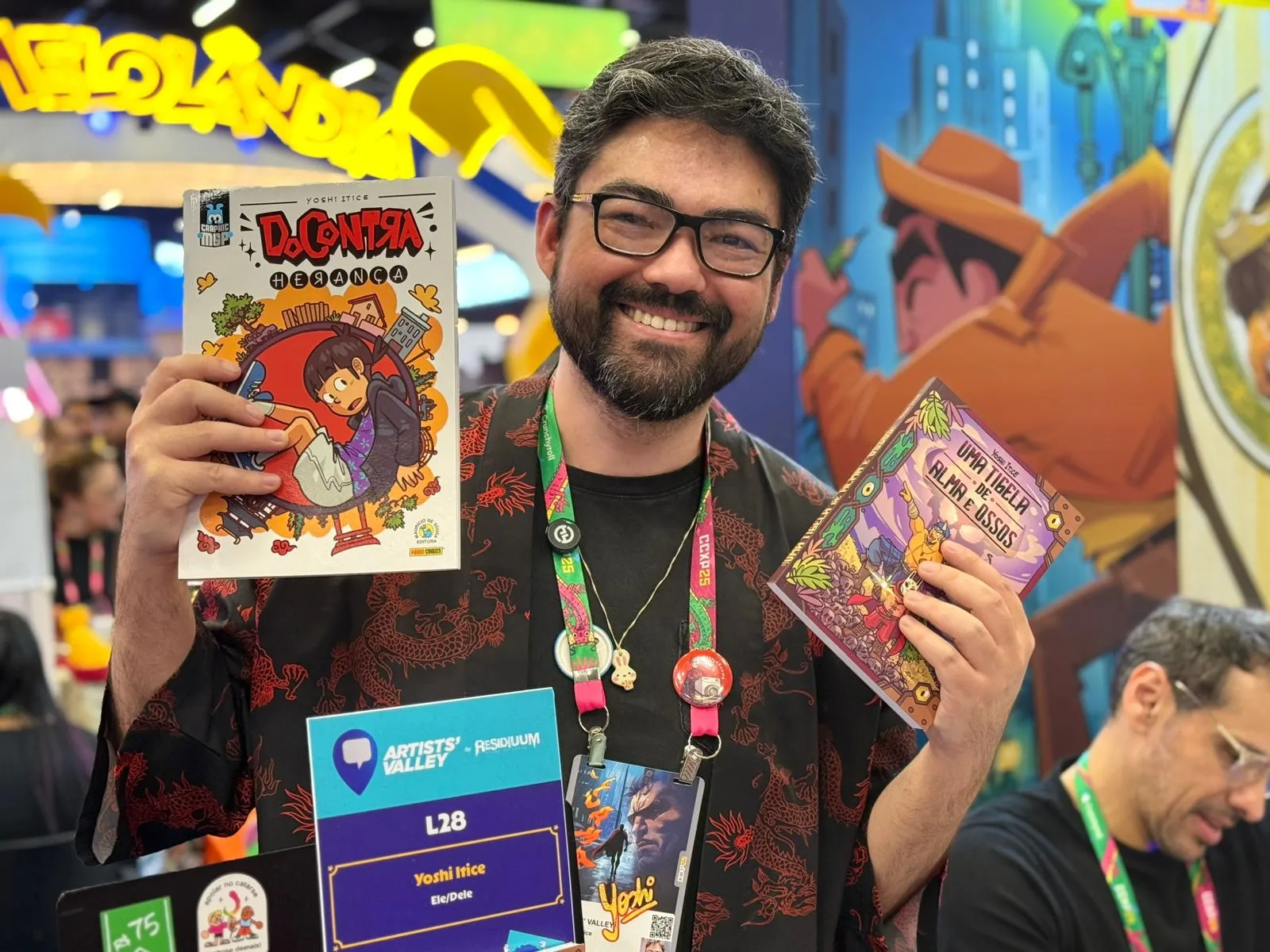 Ao lado de Lark, outro quadrinista curitibano também chama atenção. Thiago Yoshiharu Itice, conhecido como Yoshi Itice, destaca que, ao contrário do ditado popular, no caso dos quadrinhos a capa importa — e muito. “O design de capa é muito importante para chamar a atenção das pessoas”, resume.