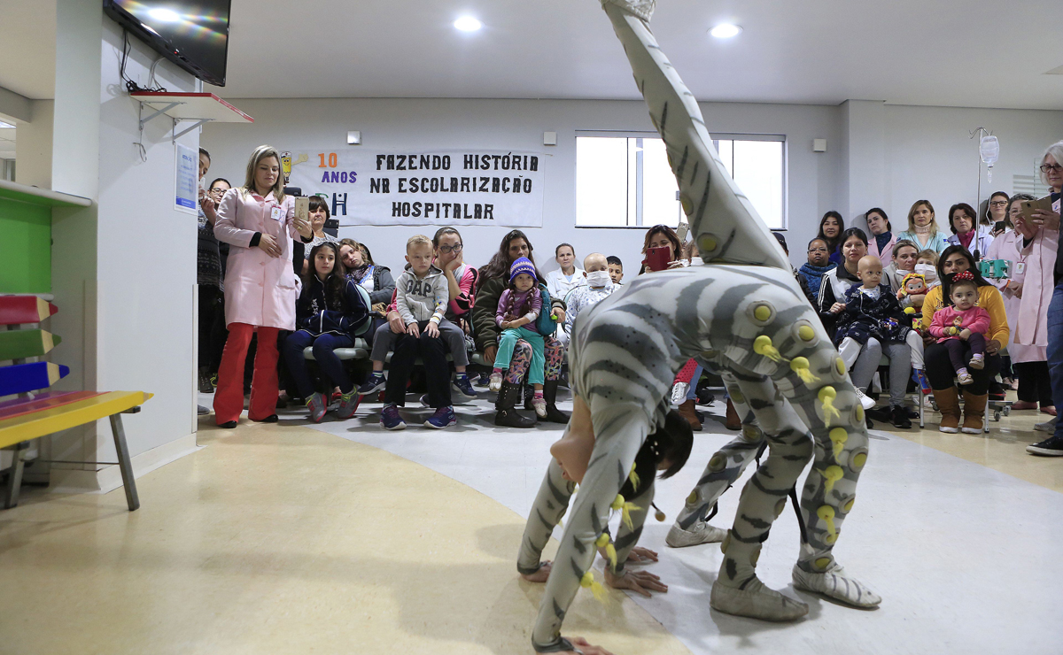 Para quem passa por um tratamento difícil na luta contra uma doença grave, minutos de distração podem ter o mesmo efeito que um presente. Foi exatamente este o objetivo de alguns dos integrantes do Circo da China, que estiveram no Hospital Erasto Gaertner, na manhã desta quarta-feira (16), com um número exclusivo para as crianças que travam diariamente essa forte luta contra o câncer.