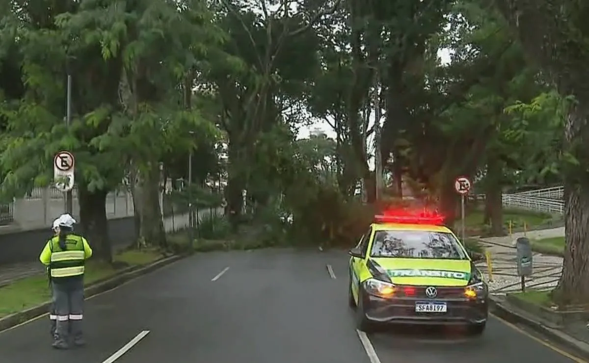 A Rua Comendador Araújo, que cruza a Coronel Dulcídio um pouco antes da árvore caída, que já tem trânsito intenso normalmente pela manhã, está completamente engarrafada. A árvore que caiu derrubou fios de energia e deixou imóveis da região sem luz. A Copel já trabalhava no trecho para reestabelecer o serviço.
