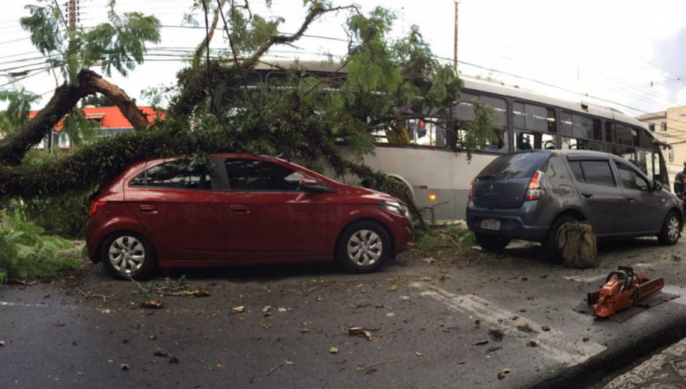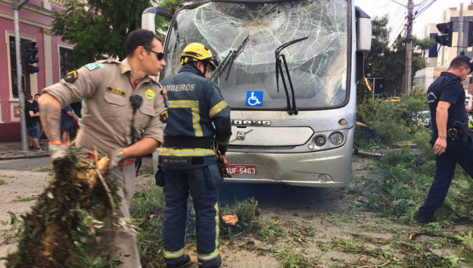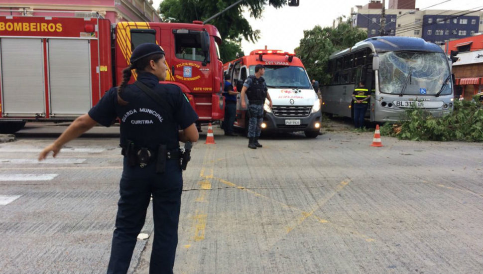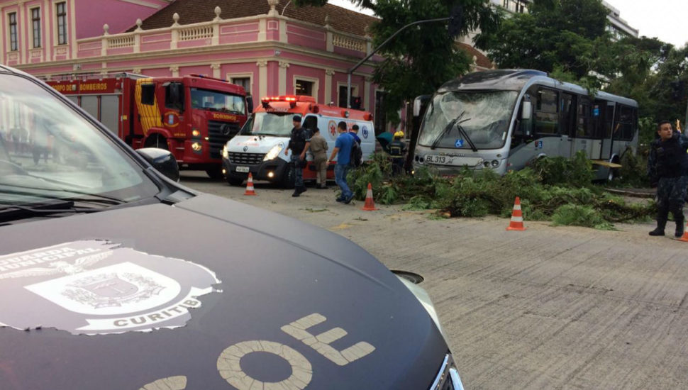 Uma árvore antiga caiu sobre um ônibus e um carro no cruzamento das avenidas Iguaçu e Marechal Floriano Peixoto, no Rebouças em Curitiba, no fim da tarde desta quarta-feira (19). Segundo informações de testemunhas, o coletivo estava lotado e cinco passageiros ficaram feridos após o incidente. Equipes do Corpo de Bombeiros, entre elas do Siate, foram acionadas para atender a ocorrência. Agentes do Setran e da Guarda Municipal de Curitiba também estiveram no local.