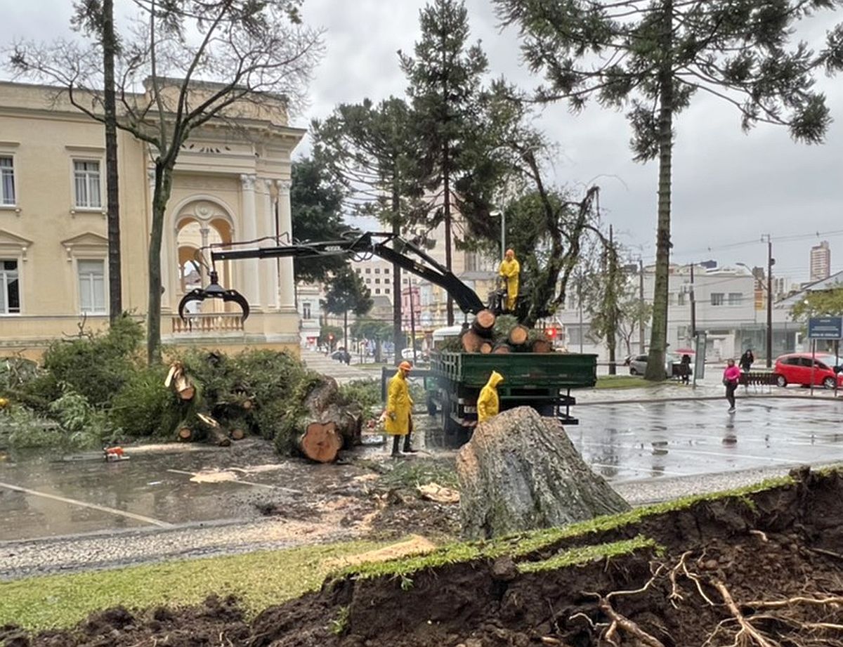 A Tribuna do Paraná acompanha de tão perto quanto possível os estragos causados pelas fortes chuvas que caem em toda a região há pelo menos dois dias. Na madrugada desta quinta-feira (02) uma árvore gigante na Praça Eufrásio Correia caiu e por muito pouco não atingiu o prédio Palácio Rio Branco, histórica sede da Câmara Municipal dos Vereadores de Curitiba.