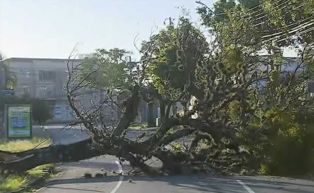 A quinta-feira (09) começou com trânsito complicado para quem precisa passar pela Avenida Desembargador Hugo Simas, no trecho do bairro São Francisco, em Curitiba. Uma árvore despencou bloqueando por completo as duas faixas da pista, que segue neste trecho sentido Rua Albino Silva. Ao cair a árvore ainda puxou fios de luz e derrubou um poste de iluminação da região.