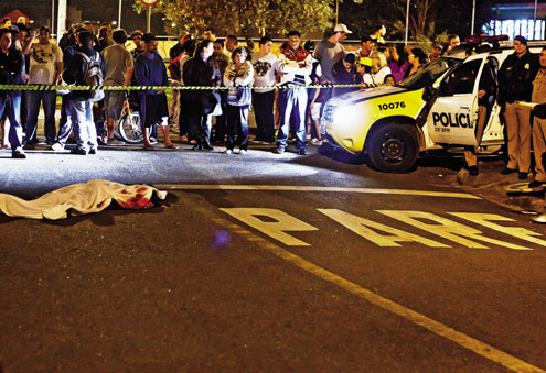 Dois assassinatos foram cometidos no início da noite de ontem. Por volta das 17h30, o adolescente Gabriel de Oliveira Souza, 15 anos, foi morto com pelo menos quatro tiros na Rua Leonardo Jareski, quando deixava o Colégio Estadual Nilo Brandão, no Cajuru. Poucos minutos depois, a menos de três quilômetros, Vanderlei Piassa, 24, morreu com nove tiros em frente a uma panificadora na Rua Jorge Luiz Freygang, Vila Reno, Uberaba. Segundo o delegado Rubens Recalcatti, da Delegacia de Homicídios (DH), há indícios que os crimes tenham relação.