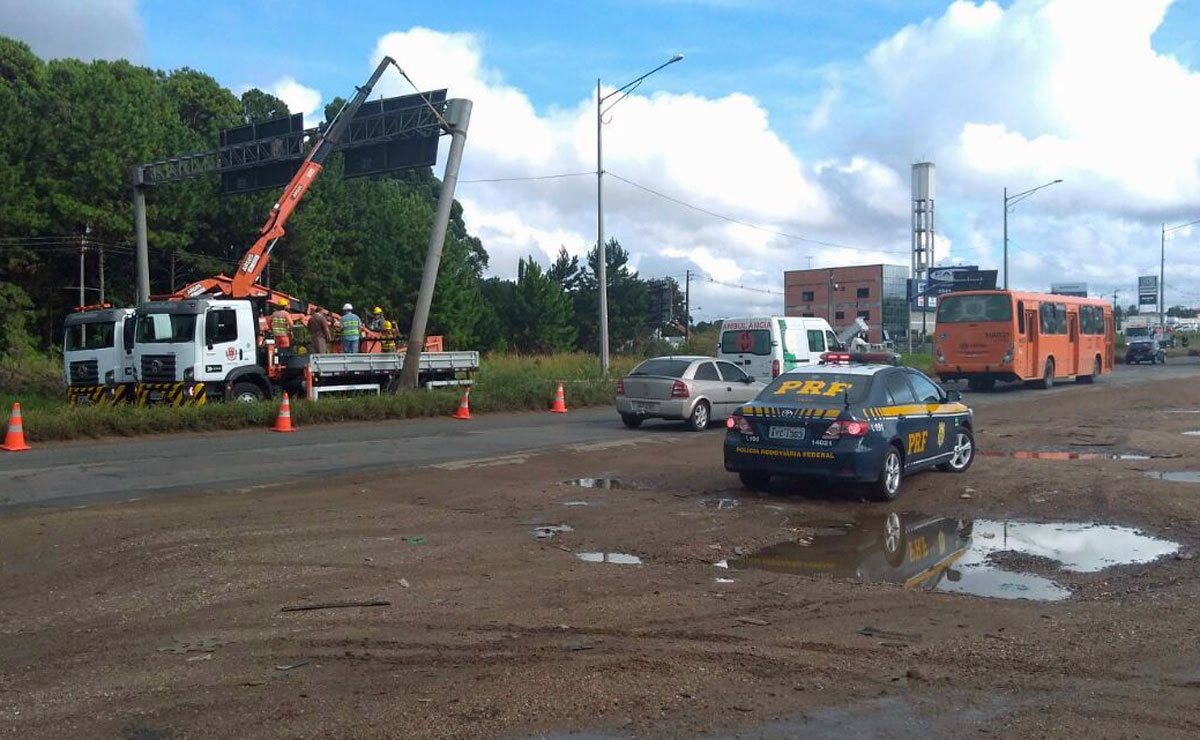 Uma ação conjunta da Setran e da Polícia Rodoviária Federal (PRF) vai bloquear totalmente o trânsito da BR-476, no sentido Fazenda Rio Grande, na altura do número 21.421 no bairro Pinheirinho. O bloqueio será nesta sexta-feira (10), a partir das 9h, para a retirada de um pórtico com duas placas de sinalização que está com risco de queda. O problema no local surgiu há mais de um ano e nada havia sido feito até agora.