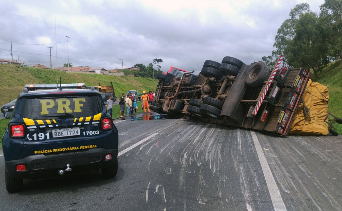 Um acidente travou por completo a pista sentido interior do Paraná na BR-116, no trecho conhecido com Contorno Leste. Um caminhão carregado com louças tombou na região do bairro Ganchinho, em Curitiba.