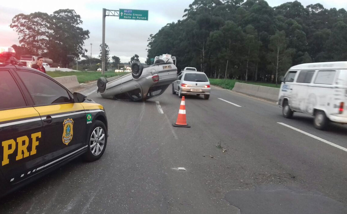 Um capotamento no quilômetro 600 da BR-376, na região do Contorno Sul, causa grande congestionamento no trecho na manhã desta segunda-feira (17). O acidente ocorreu na região da empresa Montelez.