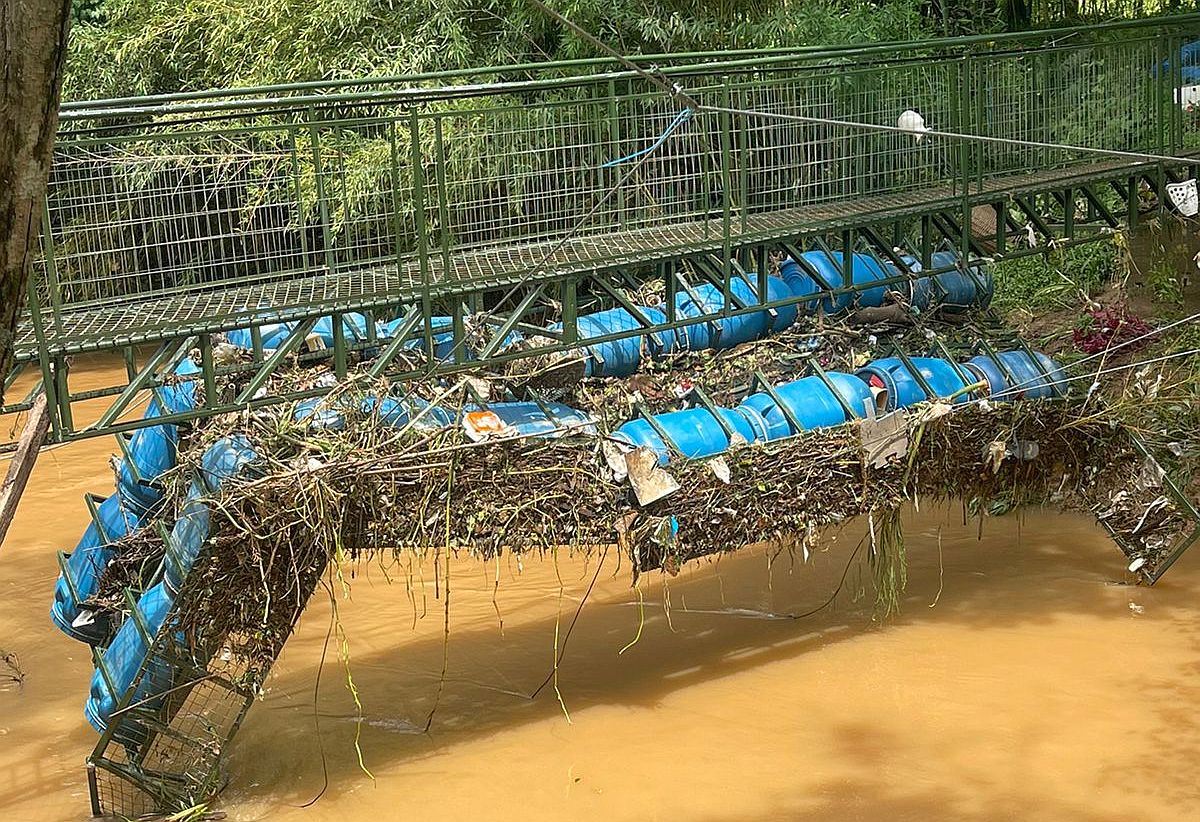 O criador da ecobarreira, o ativista ambiental Diego Saldanha, responsável direto pela retirada de aproximadamente 20 toneladas de lixo do Rio Atuba, na divisa de Curitiba com Colombo, viveu momentos de apreensão nos últimos dias. Com a chuva histórica que caiu na região, o rio subiu muito e a força das águas acabou por danificar sensivelmente o equipamento responsável por agrupar o lixo que navega pelo Atuba.