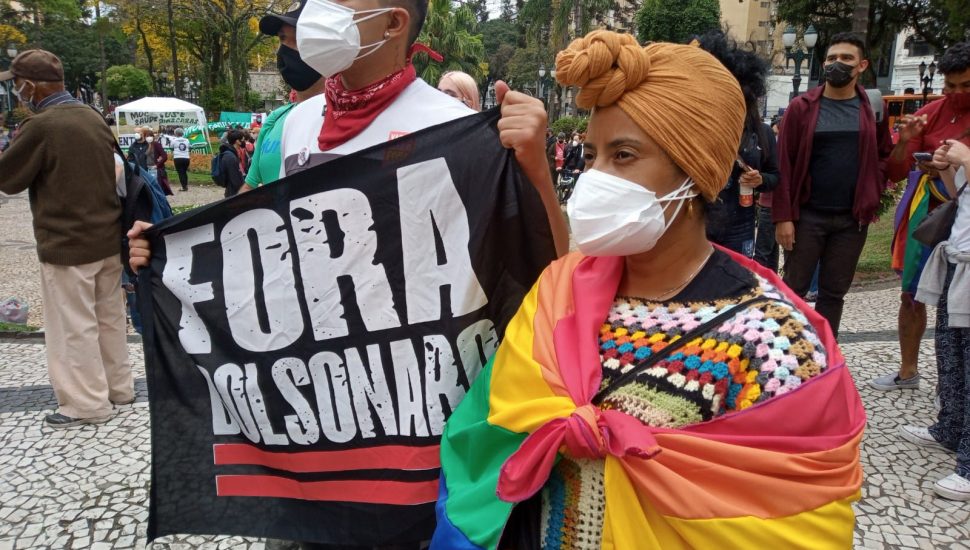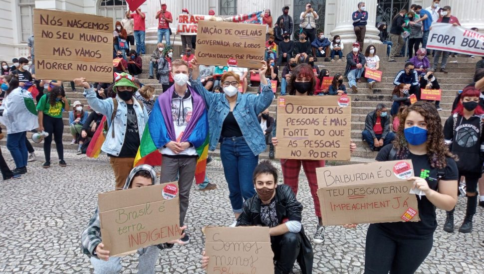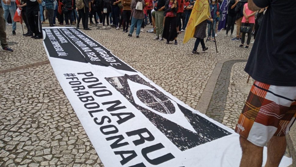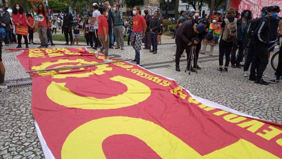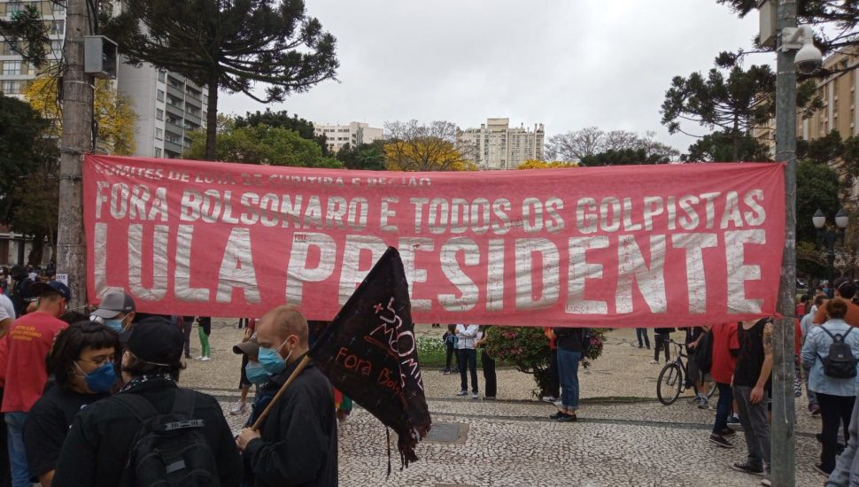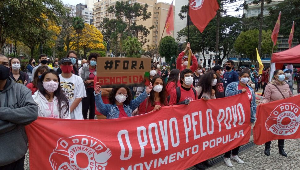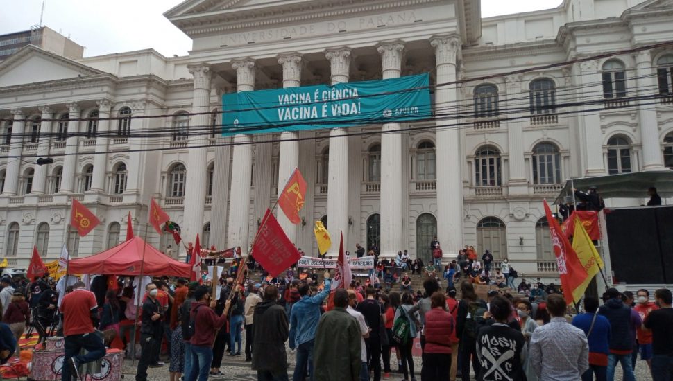 Um ato a favor do impeachment do presidente Jair Bolsonaro acontece nesta tarde de terça-feira (07), feriado de Sete de Setembro, em Curitiba. Manifestantes se reúnem na Praça Santos Andrade, no Centro, com faixas de #foragenocida, “Impeachment Já” e “Somos menos 584 mil”, que faz alusão às vítimas da covid-19.