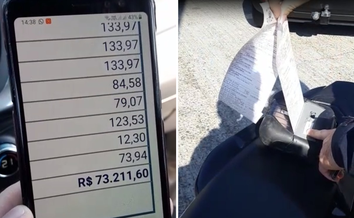 Segundo a Polícia Rodoviária Federal o moto, com placa de Concórdia (SC), foi abordada para fiscalização na BR-476, quando estava próximo ao pedágio da Lapa. Os policiais constataram várias infrações registradas por aquele veículo. Eram 43 multas por excesso velocidade, sendo que algumas delas tinham sido registradas no mesmo dia da abordagem. Além disso, foram registradas outras infrações como avanço de sinal vermelho e circulação em ciclovias. Além dos R$ 73 mil em multas, as multas somavam milhares de pontos na CNH.