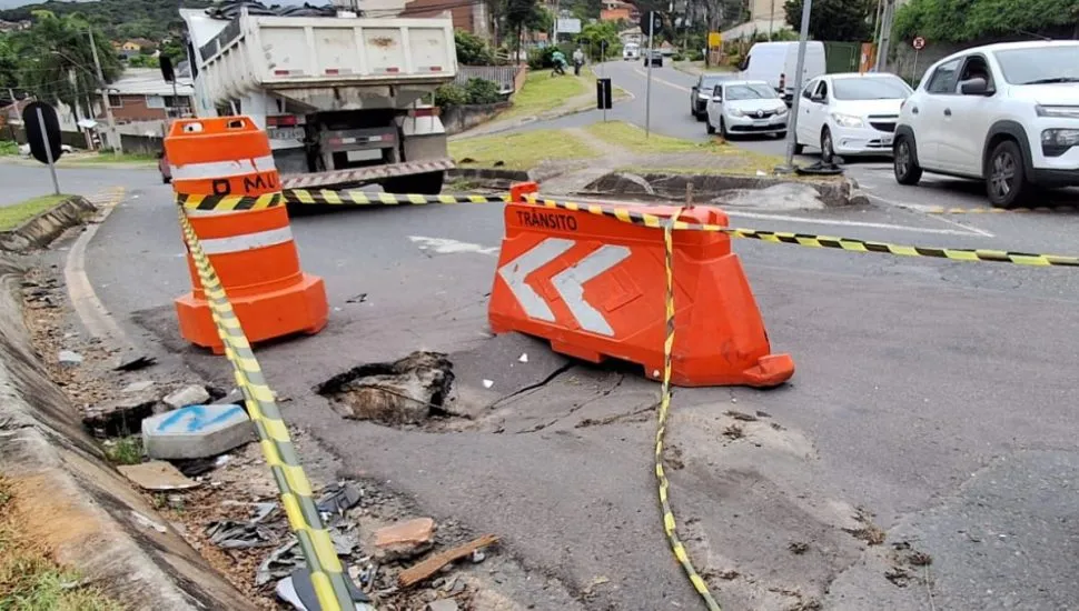 Um buraco localizado na rotatória da Avenida Cândido Hartmann, no Santo Inácio, em Curitiba, aumentou o perigo em uma região movimentada, por onde passam diariamente muitos universitários, funcionários de uma universidade próxima e moradores do bairro.