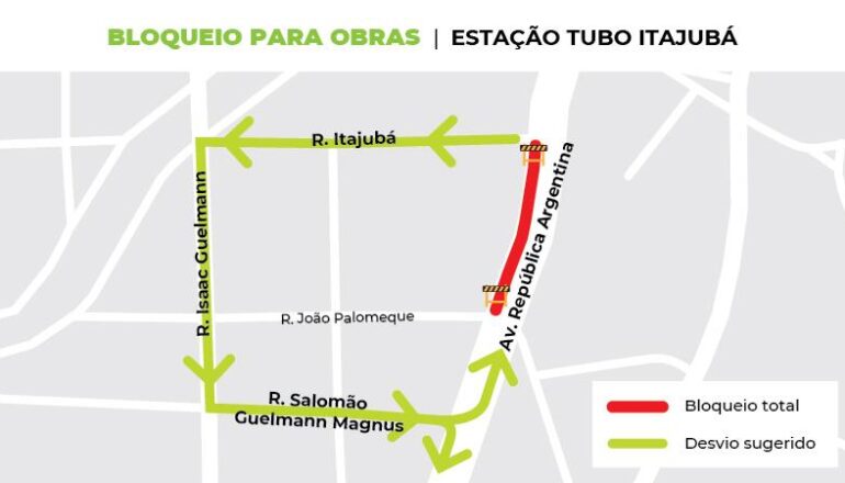 Com a mudança neste trecho, quem vai pela Avenida República Argentina no sentido bairro precisará virar à direita na Rua Itajubá e seguir até a Isaac Guelman, onde deverá virar à esquerda na Rua Salomão Guelmann, que dará acesso novamente à República Argentina.