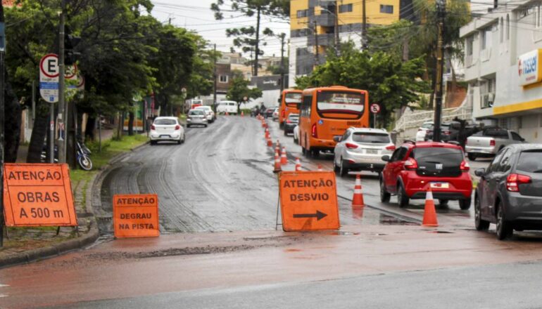 O trânsito no local está em meia pista no sentido centro-bairro, para a intervenções de fresa e recape no asfalto. Por conta da tempestade que atingiu Curitiba as obras foram interrompidas temporariamente, nesta quarta-feira (4), mas a via permanece em meia-pista e sinalizada com placas e cones.