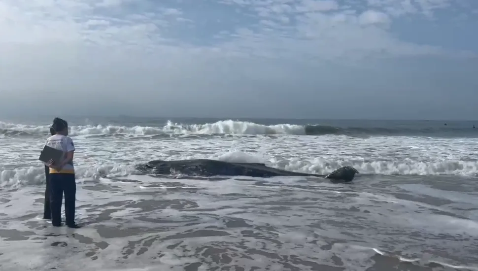 Pesquisadores vão estudar causa da morte de baleia-jubarte encalhada em Pontal do Paraná