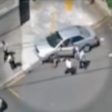 Câmeras de segurança, de prédios próximos, filmaram o cliente entrando no carro, após sair do banco. Quando o marginal, que estava de moto, deu voz de assalto, foi atingido pelo veículo da vítima. Sem perceber que era um roubo, populares queriam tirar o ladrão debaixo do carro e acusaram a vítima de omissão de socorro. Depois de 20 minutos, quando os curiosos conseguiram tirar o homem, ele sacou a arma.