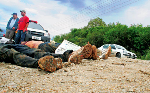 Os cinco marginais chegaram à fazenda, por volta das 10h30, a bordo do Corsa bordô placa MAO-1904 (Mafra – SC), com alerta de roubo, segundo o tenente Stocchero, do 17.º Batalhão da Polícia Militar. Eles queriam dinheiro, mas não encontraram. Na saída, depararam-se com policiais militares de Balsa Nova, que já haviam sido chamados.