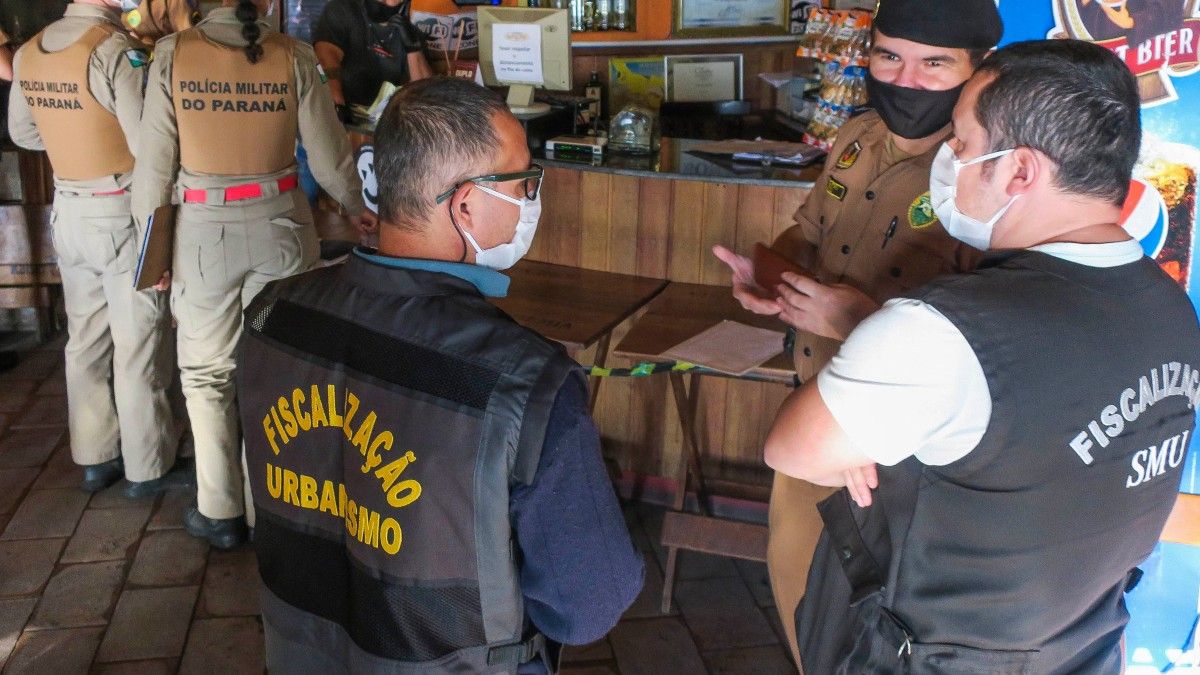 Agentes da prefeitura de Curitiba e do governo estadual notificaram na noite de sexta-feira (19), cinco estabelecimentos que estavam descumprindo o decreto municipal que estabelece restrições ao comércio como uma das medidas de enfrentamento à covid-19. Entre eles, um bar no bairro Rebouças e uma casa de eventos no Sítio Cercado foram interditados.
