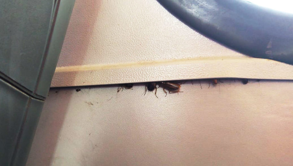Uma grande quantidade de baratas tem sido vista com frequência em ônibus da linha Fazenda/Pinheirinho, que liga Curitiba à Fazenda Rio Grande, na região metropolitana. Segundo o relato de um passageiro, a situação já dura duas semanas. Uma reclamação foi postada nas redes sociais e mostra a foto do interior de um veículo, no qual são vistas famílias de baratas caminhando por uma fresta perto da janela. O texto da postagem cobra explicação sobre uma possível falta de dedetização no veículo.