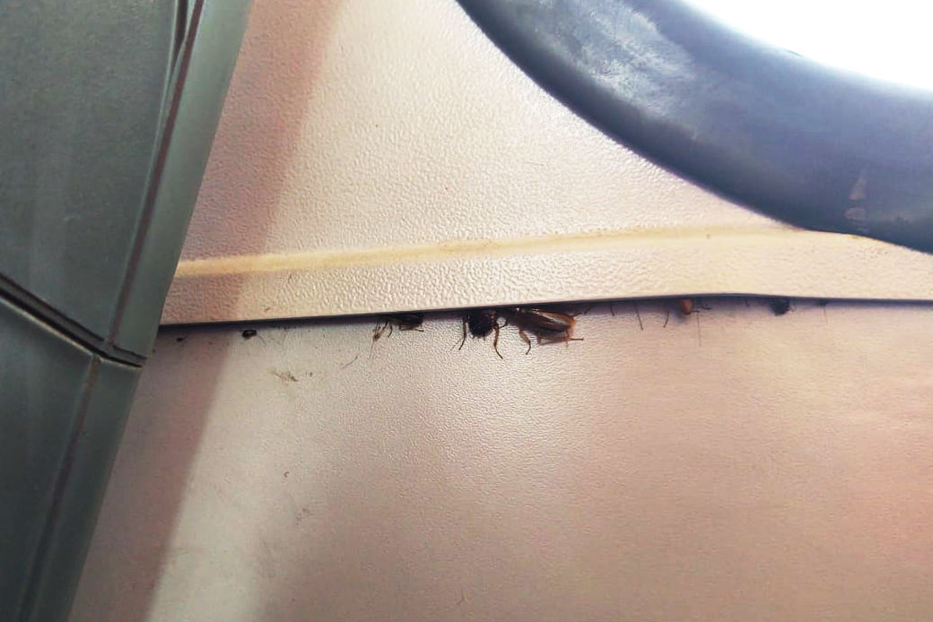 Uma grande quantidade de baratas tem sido vista com frequência em ônibus da linha Fazenda/Pinheirinho, que liga Curitiba à Fazenda Rio Grande, na região metropolitana. Segundo o relato de um passageiro, a situação já dura duas semanas. Uma reclamação foi postada nas redes sociais e mostra a foto do interior de um veículo, no qual são vistas famílias de baratas caminhando por uma fresta perto da janela. O texto da postagem cobra explicação sobre uma possível falta de dedetização no veículo.