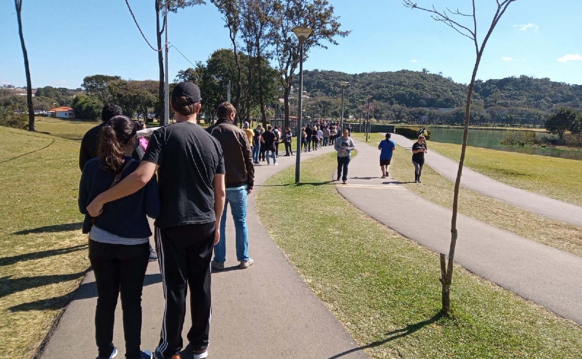 Quem foi ao Parque Barigui, em Curitiba, para ser vacinado contra a covid-19 nesta segunda-feira (02) está precisando de uma dose de paciência. Uma enorme fila se formou durante a manhã e pessoas relatam que estão na espera por quase 4 horas. Na Praça Ouvidor Pardinho, na região do Rebouças, a espera era de três horas. A prefeitura orienta as pessoas para procurem locais menos movimentados para a vacinação na cidade, listados abaixo, evitando assim muito tempo na fila.