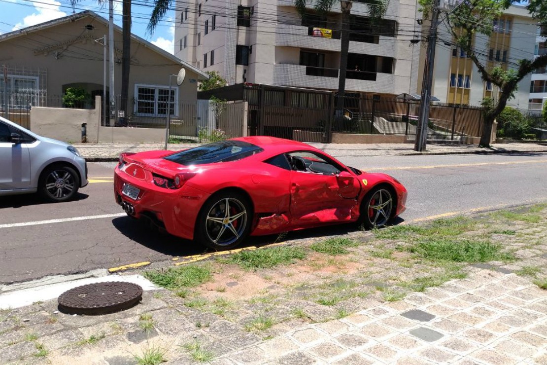 Um acidente envolvendo uma Ferrari e um Jetta chamou a atenção de quem passava pela Rua Augusto Stresser, no cruzamento com a Rua Barão de Guaraúna, no bairro Alto da Glória, em Curitiba, neste domingo (10). De acordo com moradores, ambos os motoristas negaram ter provocado a colisão.