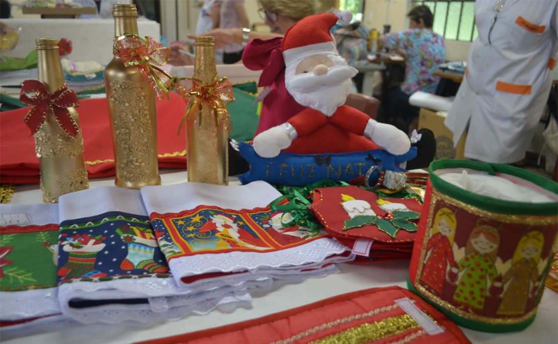 Serão vendidos diversos produtos artesanais, como panos de prato, toalhas, tapetes, artigos para casa, chaveiros, bolsas, aventais, kits de costura, peças de decoração natalina e muitos mais. Os preços variam de R$1 a R$45 e os valores arrecadados serão utilizados para compra de materiais utilizados por pacientes do SUS.