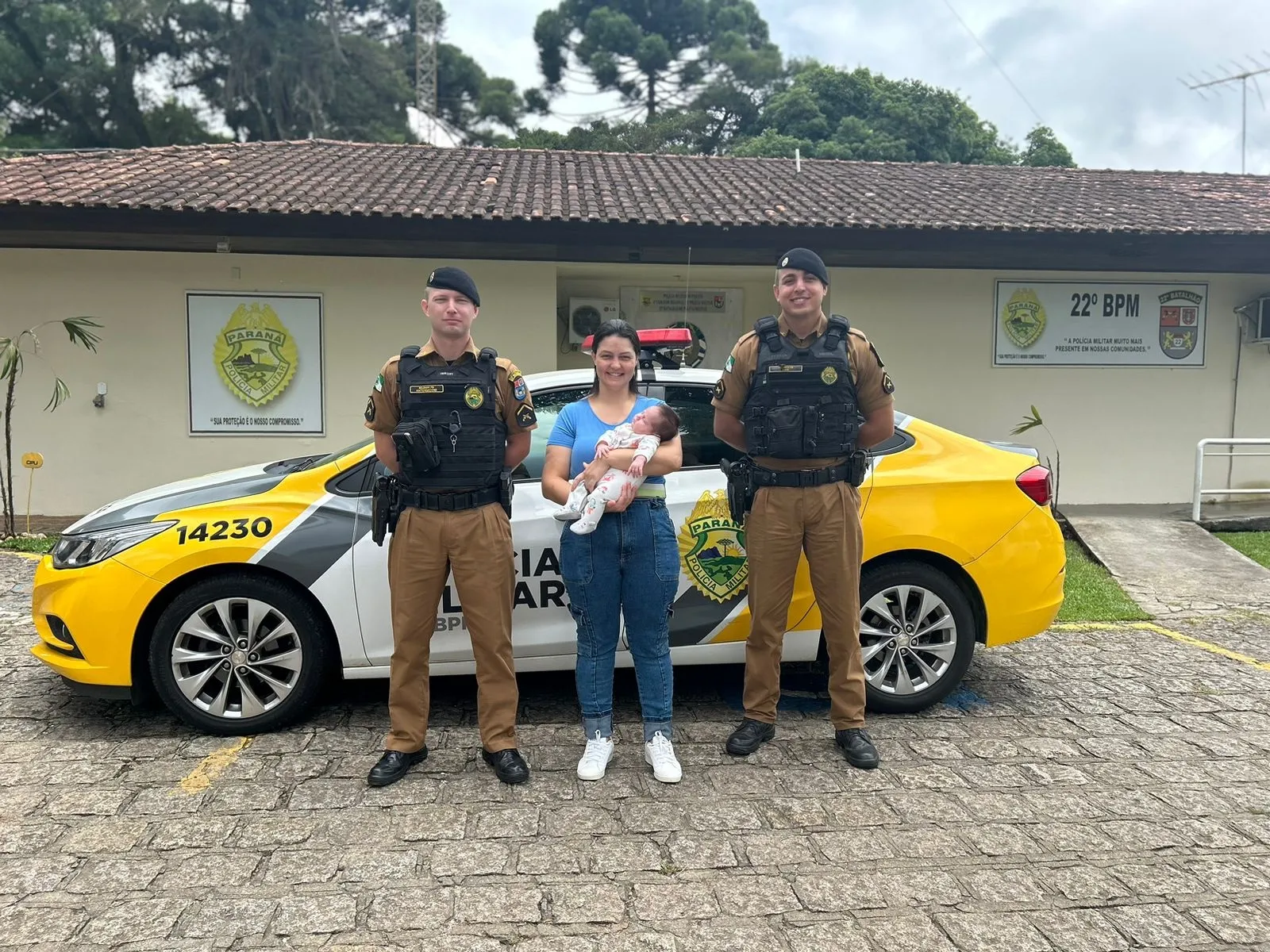 Os policiais militares prontamente pararam a viatura para prestar auxílio e se depararam com uma mãe que trazia seu bebê, de um mês de idade, em seu colo. A criança havia se engasgado com leite e já estava ficando com a pele roxa.