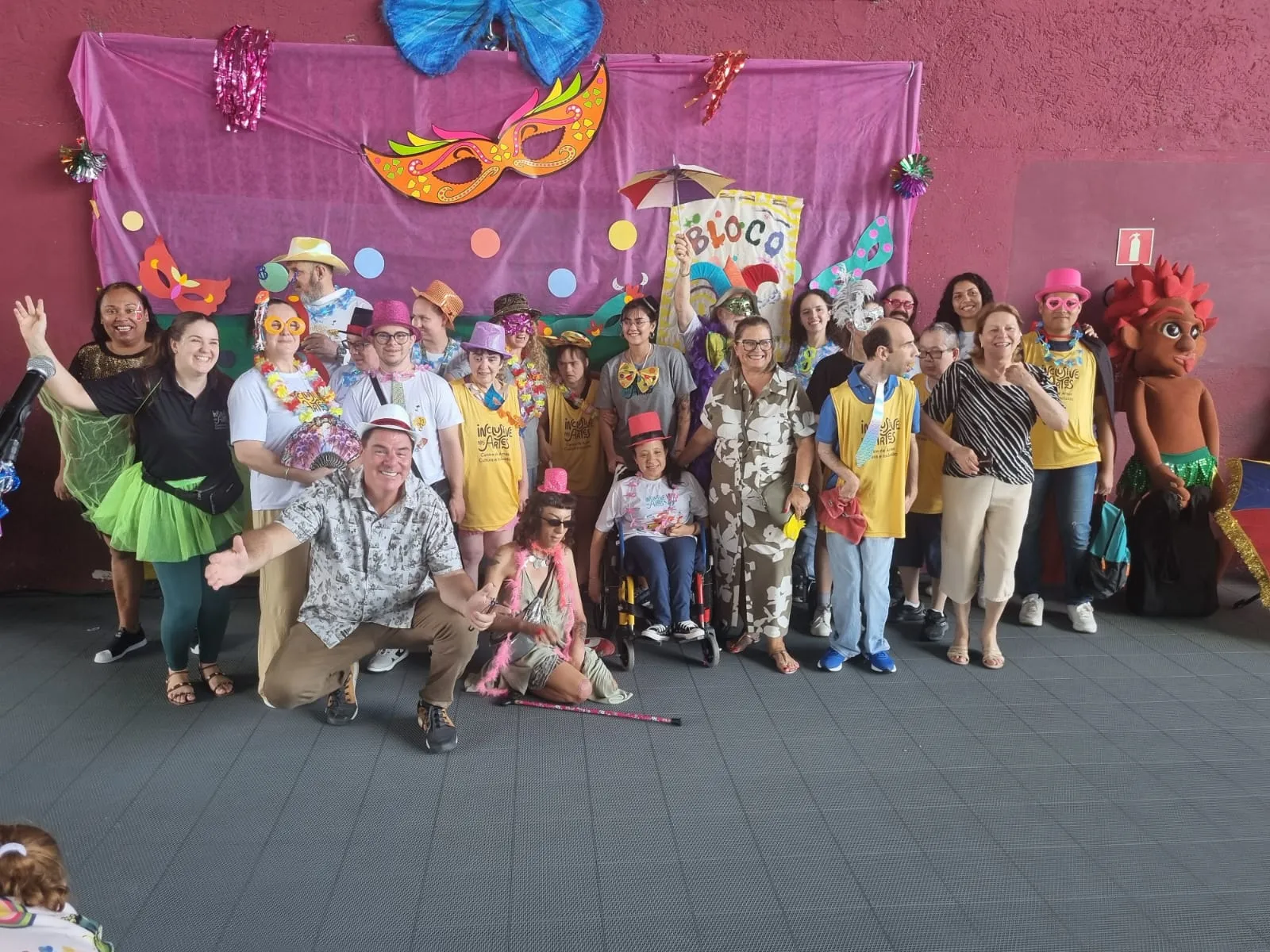 Cerca de 200 foliões, incluindo pessoas com deficiência, participaram do Bloco da Inclusão nesta quarta-feira (11/2) no ginásio de esportes da Rua da Cidadania do Fazendinha, em Curitiba. O evento, em sua segunda edição, reuniu crianças, jovens e adultos para celebrar o carnaval.