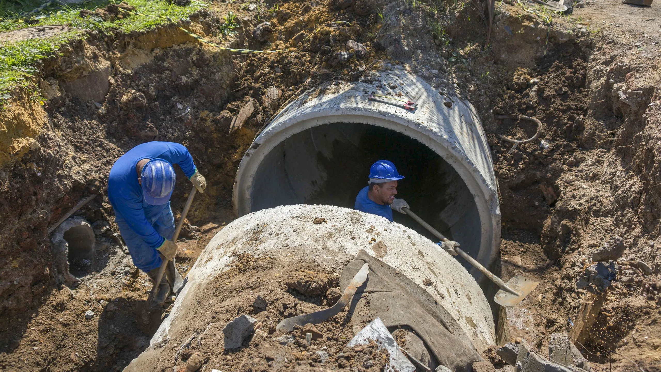 A intervenção visa requalificar a rede de águas pluviais, com a substituição e instalação de aproximadamente 70 metros de tubulação de grande porte ao longo da lateral da via. Tubos com cerca de um metro de diâmetro serão utilizados para reforçar o sistema de escoamento da água da chuva, ajudando a prevenir alagamentos e danos ao asfalto.