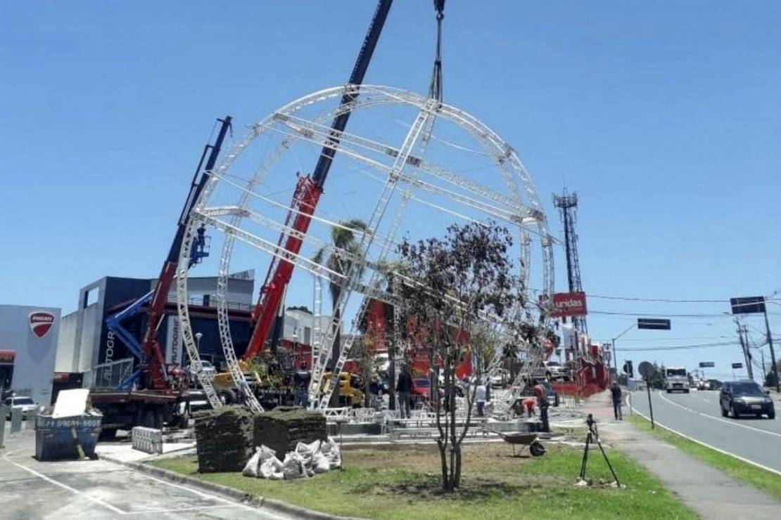Quem passa pela Rua Mário Tourinho, no Campina do Siqueira, em Curitiba se surpreende com uma gigante construção esférica instalada no Jardinete Heitor Gurgel do Amaral Valente Netto. A partir da noite deste sábado (30), a estrutura irá se transformar em uma bola de natal, quando se acenderem os sete quilômetros de mangueiras de luz de LED que a decoram.