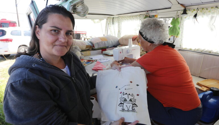 Por outro lado, agora elas fazem amigos pela estrada. “Como estamos na rua, é normal aparecerem pessoas que não querem aprender o bordado, mas que querem ser ouvidas. Então, a gente funciona um pouquinho como psicólogas das estrada. A pessoa, chega, conversa, conta os problemas. Dois dias depois, volta para agradecer a conversa”, brinca a Hulda.