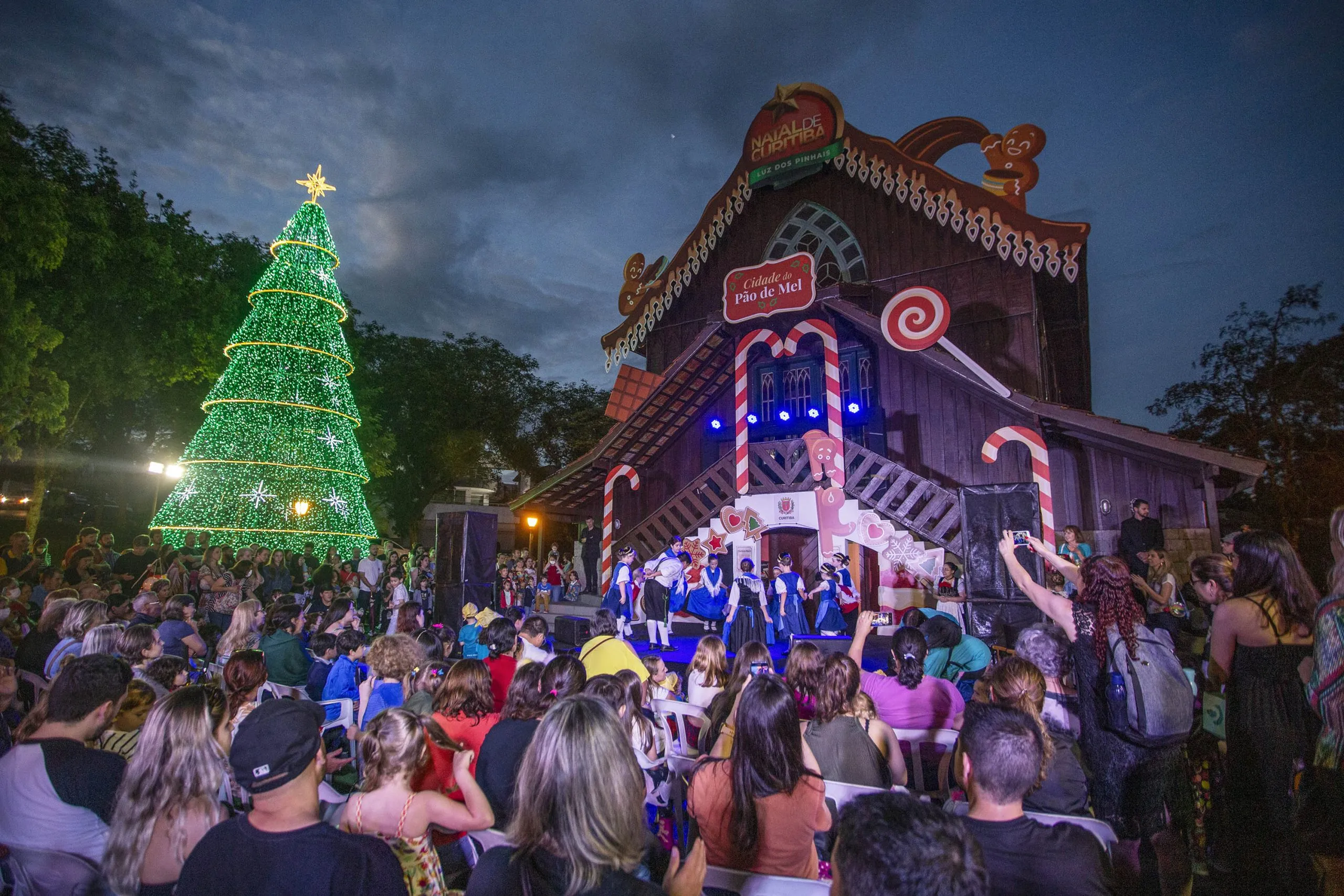A programação inclui apresentações escolares, coral e danças folclóricas em frente ao Oratório de Bach, transformado na Casa do Pão de Mel para o Natal de Curitiba 2025. O ponto alto da noite acontece às 20h, com uma procissão iluminada liderada por um personagem caracterizado como São Martinho em um cavalo branco.