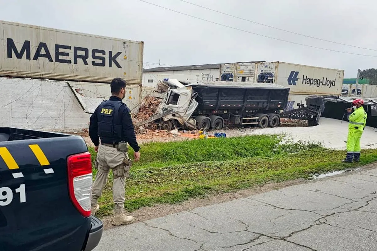 Segundo a Polícia Rodoviária Federal (PRF), existe a possibilidade do caminhão ter batido em um poste antes de uma parte da carreta tombar. O acidente ocorreu no km 63, sentido Paranaguá.
