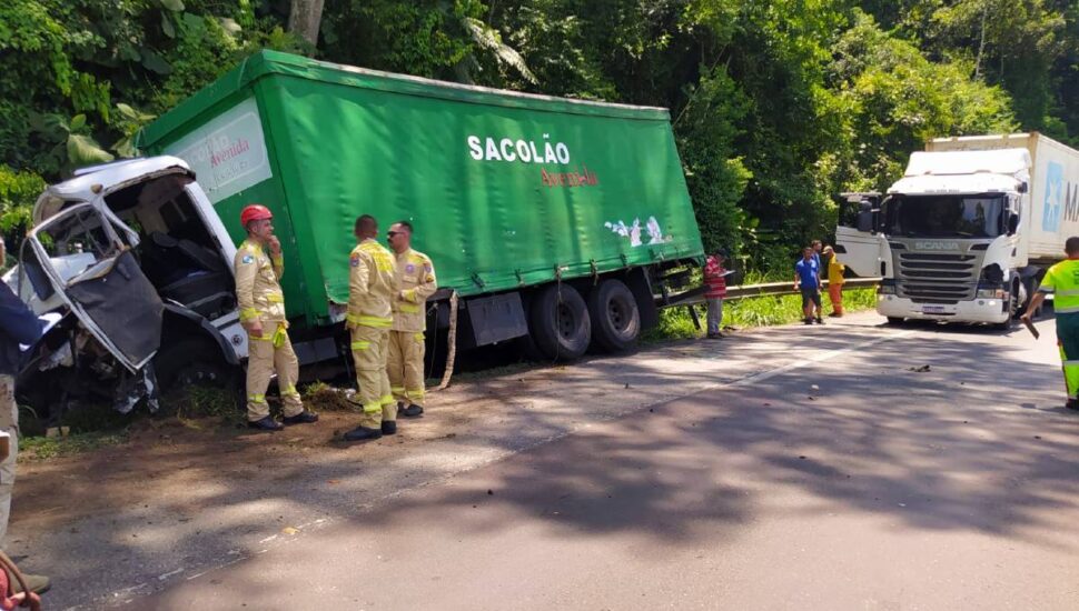 A BR-277 está interditada no sentido Litoral neste começo de tarde de quarta-feira (10). Um acidente envolvendo três caminhões deixou duas pessoas feridas.