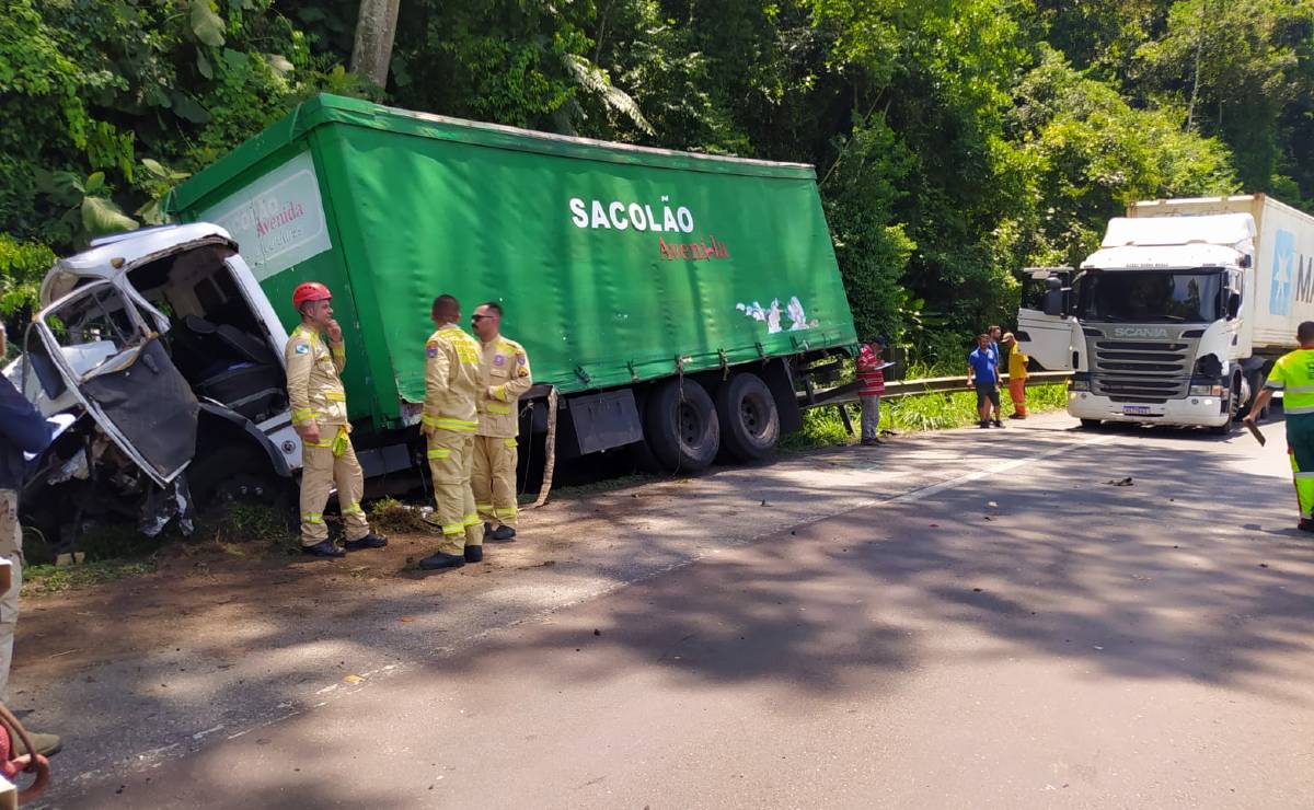 A BR-277 está interditada no sentido Litoral neste começo de tarde de quarta-feira (10). Um acidente envolvendo três caminhões deixou duas pessoas feridas.