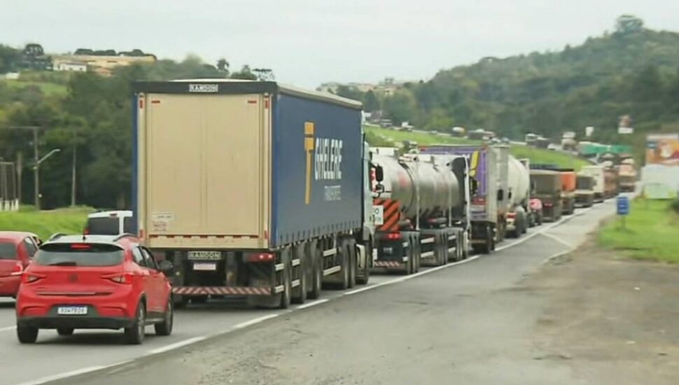 A lentidão é causada porque muitos caminhões e carros tentam acessar a BR-277 pelo Contorno Sul.