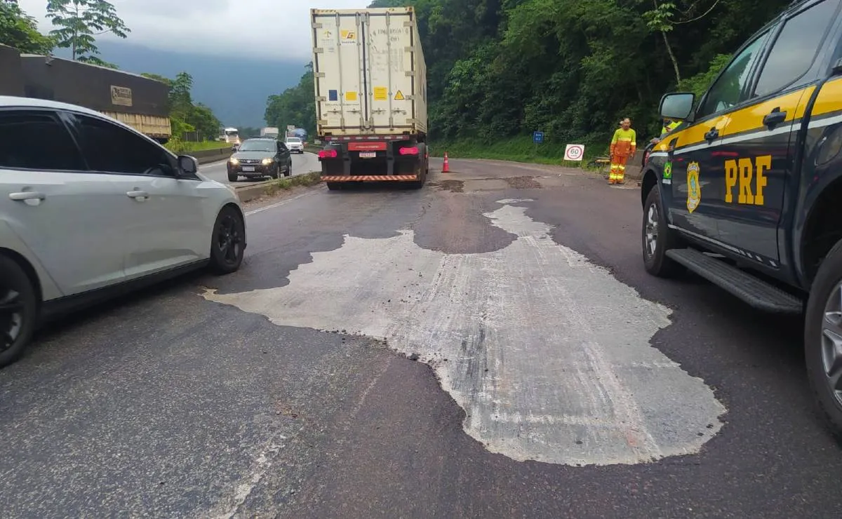 Outro ponto de lentidão á na serra do Mar, onde uma obra emergencial para nivelar o asfalto no km 41 causa congestionamento de cerca de 8 quilômetros. A obra foi encerrada perto das 11h.