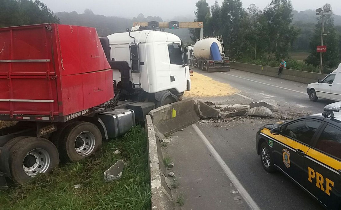 O tombamento de um caminhão no quilômetro 650,9, por volta das 8h15 desta terça-feira (11), causou bloqueio em duas das três faixas sentido Santa Catarina da rodovia. O acidente ocorreu no trecho de Tijucas do Sul, na Região Metropolitana de Curitiba (RMC), um pouco antes de um radar de monitoramento.