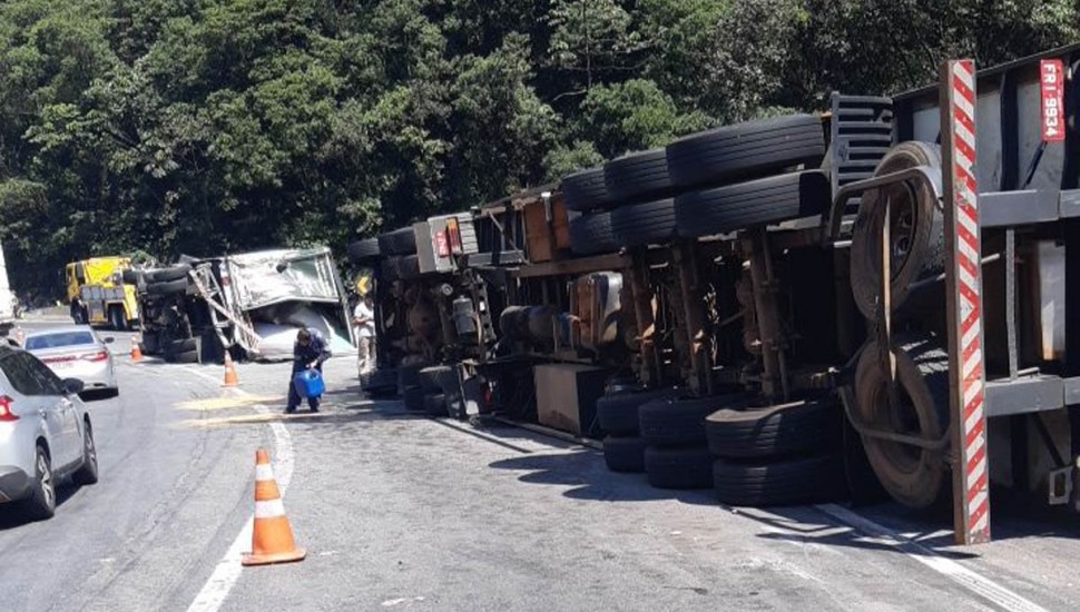 Um acidente envolvendo um caminhão e uma carreta deixou a BR-376 interditada, no início da tarde desta quarta-feira (2). O acidente aconteceu no quilômetro 668, na serra, e ambos os caminhões tombaram na pista, por volta do meio-dia, deixando o sentido sul da rodovia completamente bloqueado. No entanto, uma das pistas foi liberada pouco menos de uma hora depois da colisão.